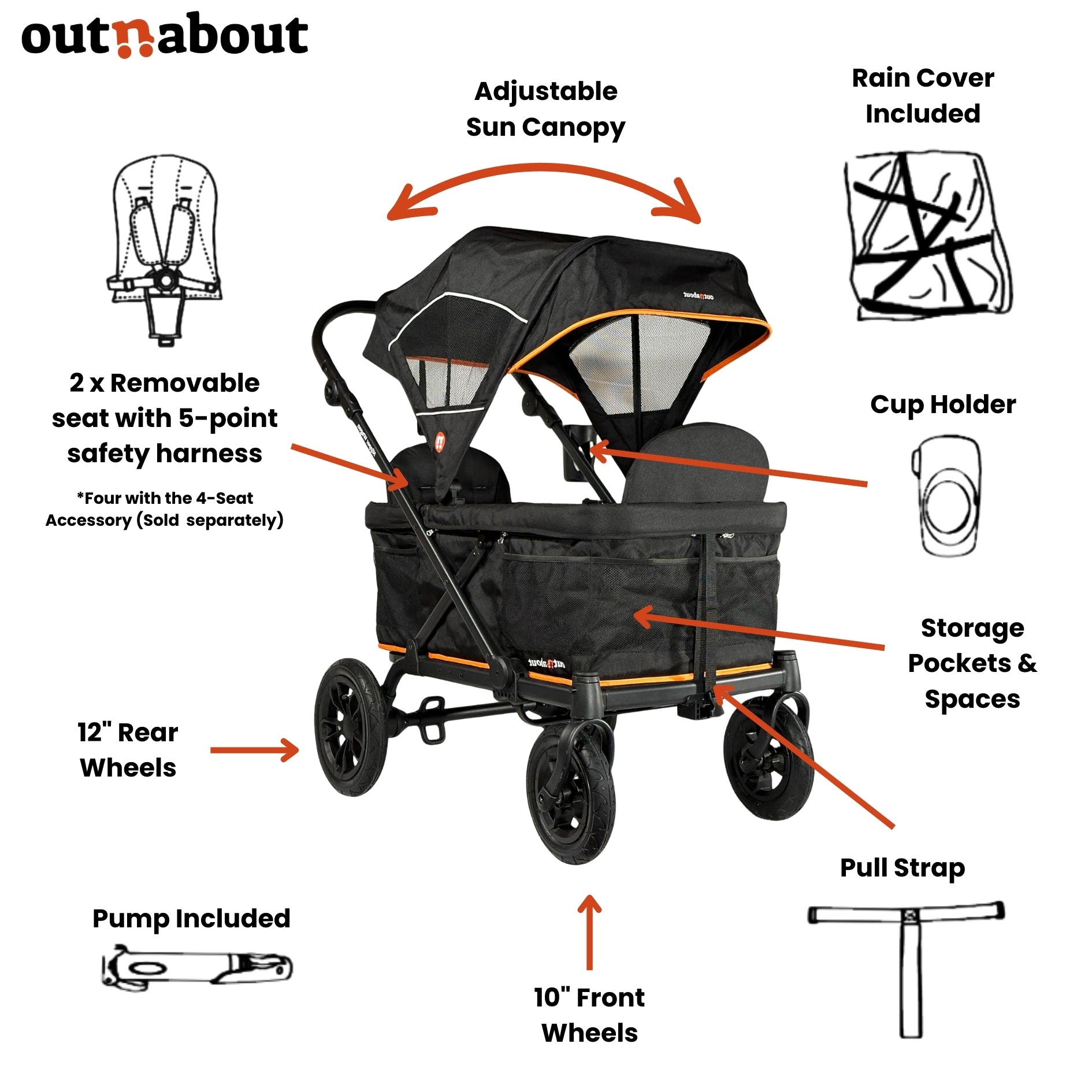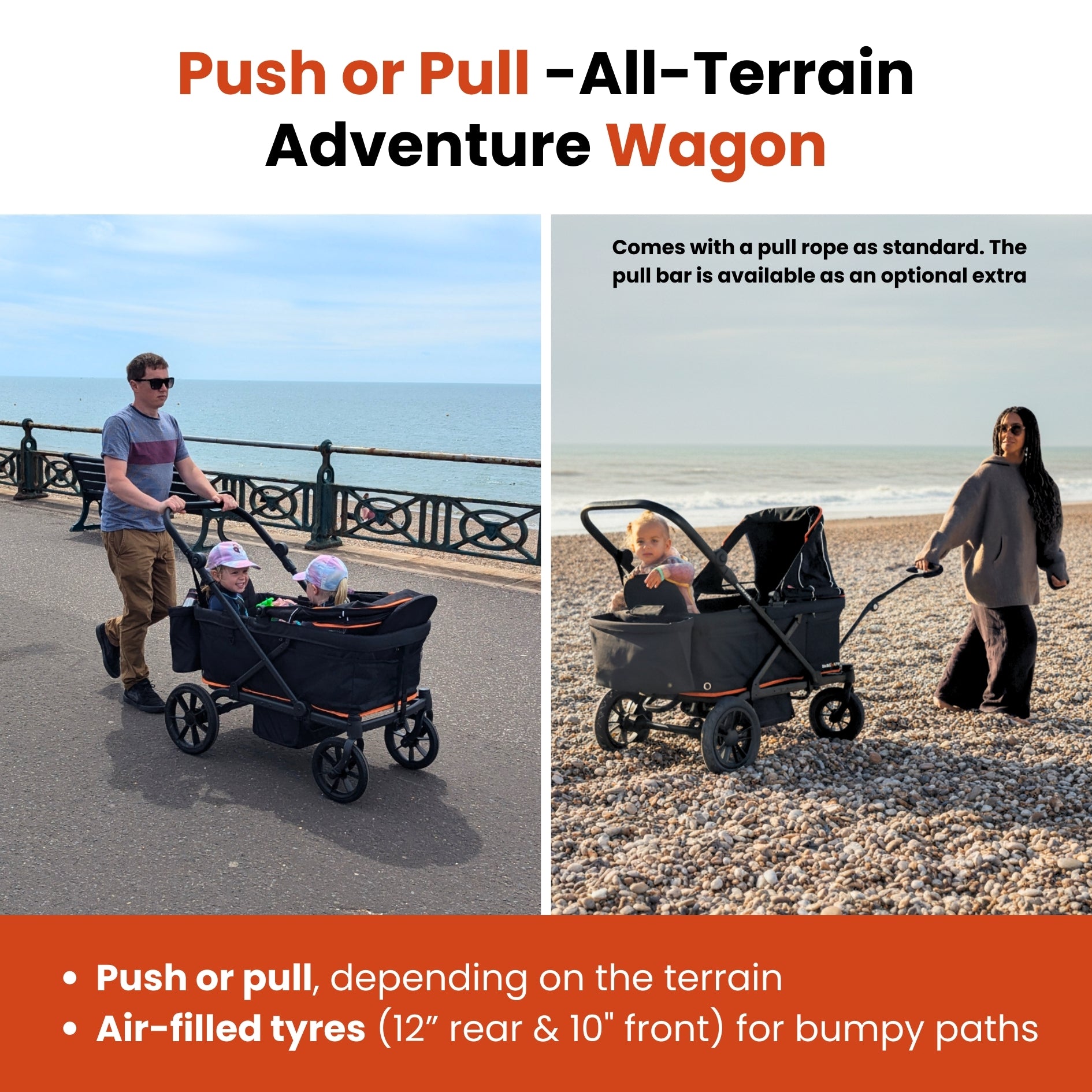 The Multi-Use Wagon for Growing Families, perfect for sibling chats, shopping trips, picnics, festivals and trips to the beach.