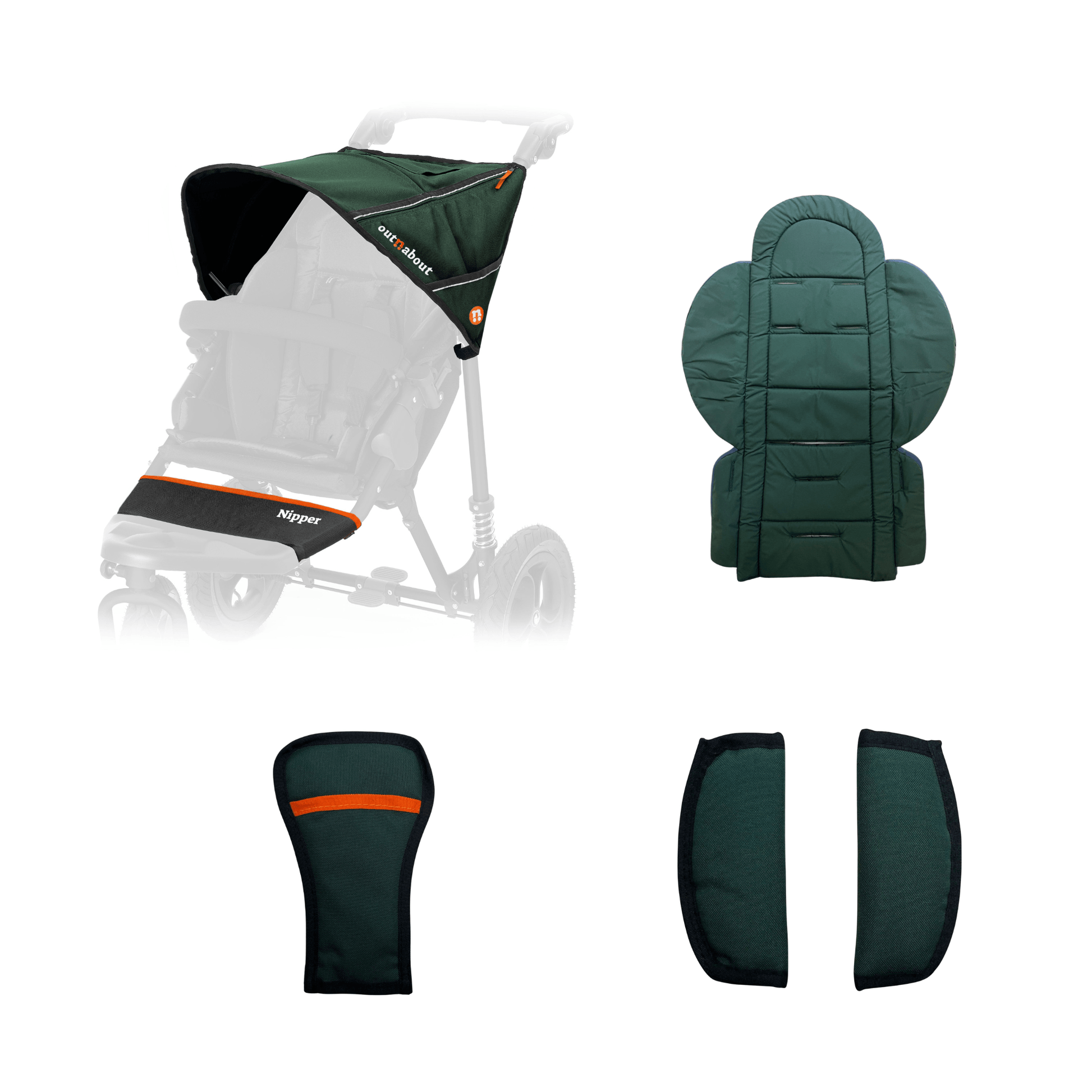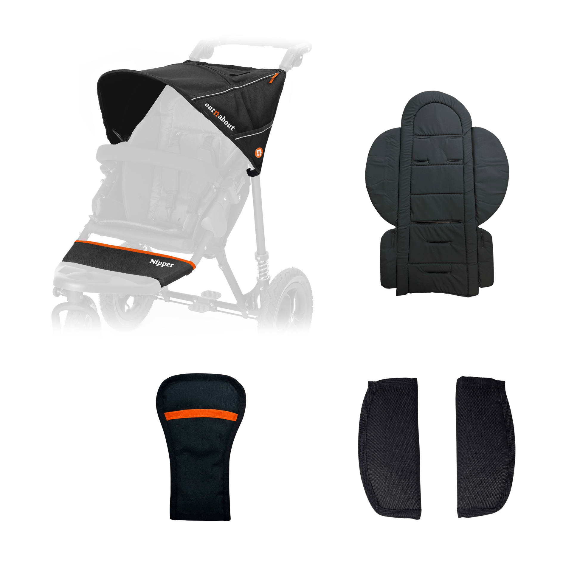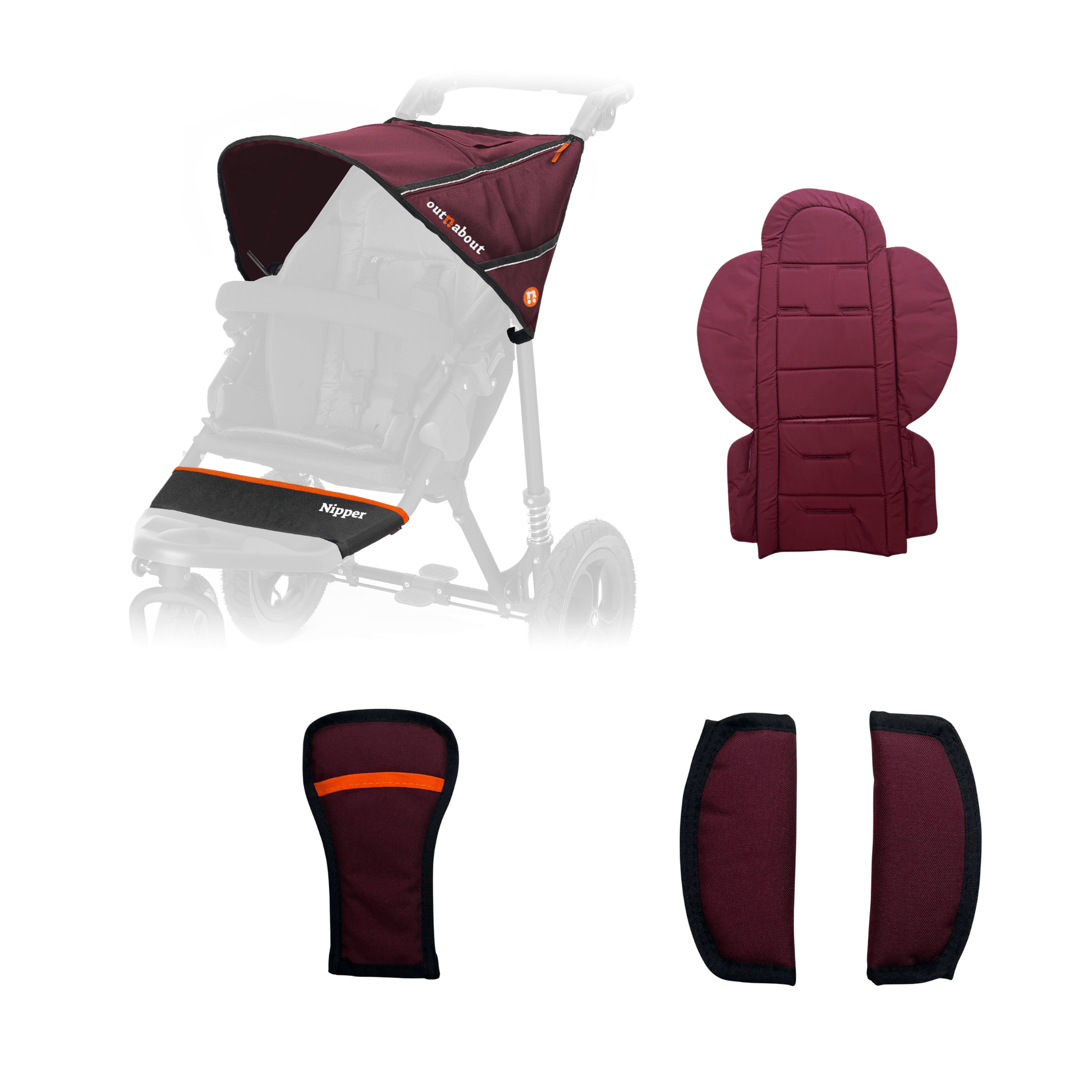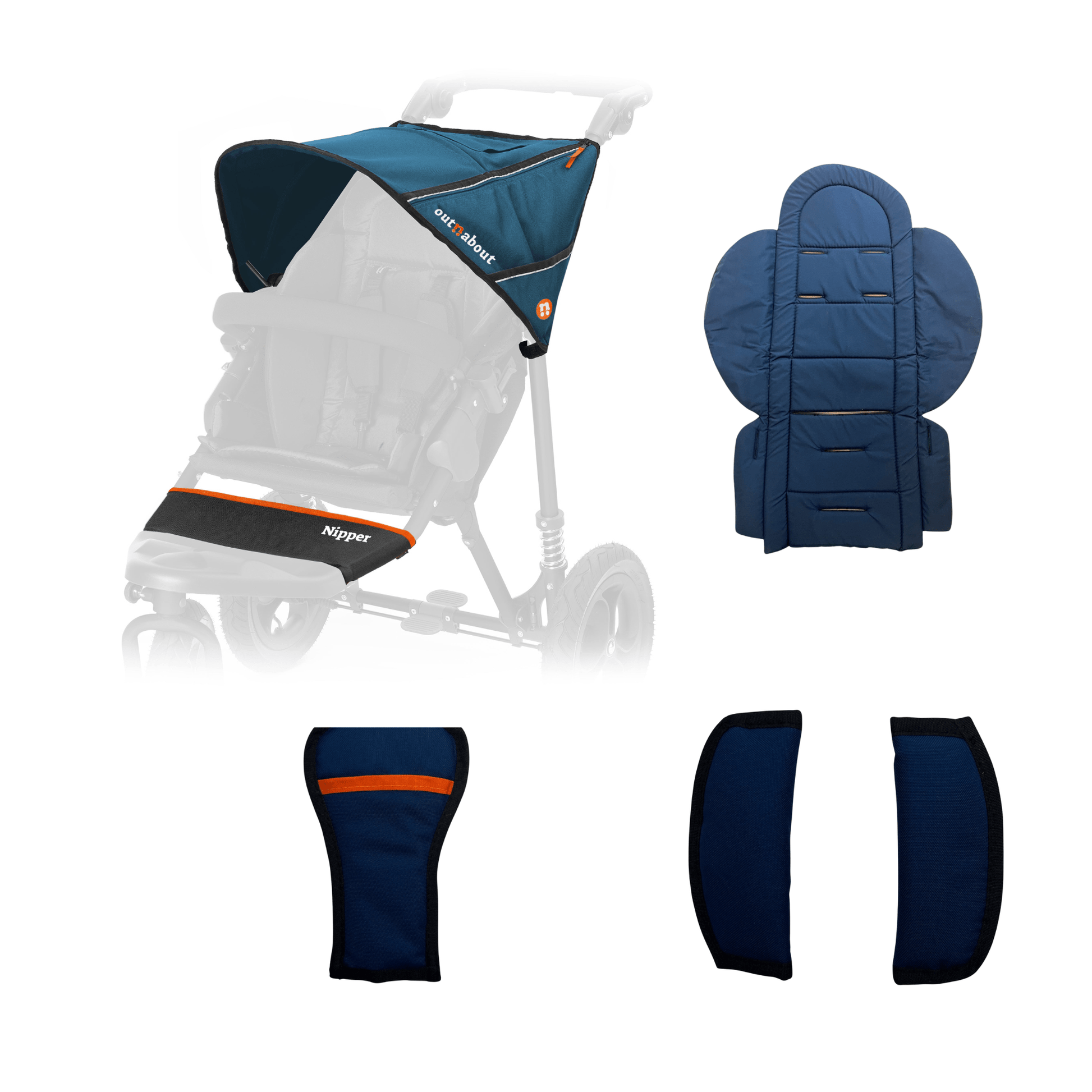 ¿Tienes una Nipper v1-v4 y quieres cambiar el color de tu cochecito? Este paquete de colores incluye una nueva capota con visera parasol integrada, forro para el asiento, banda para los pies, correas del arnés, almohadilla para la entrepierna y tela resistente a los rayos UV y al agua.