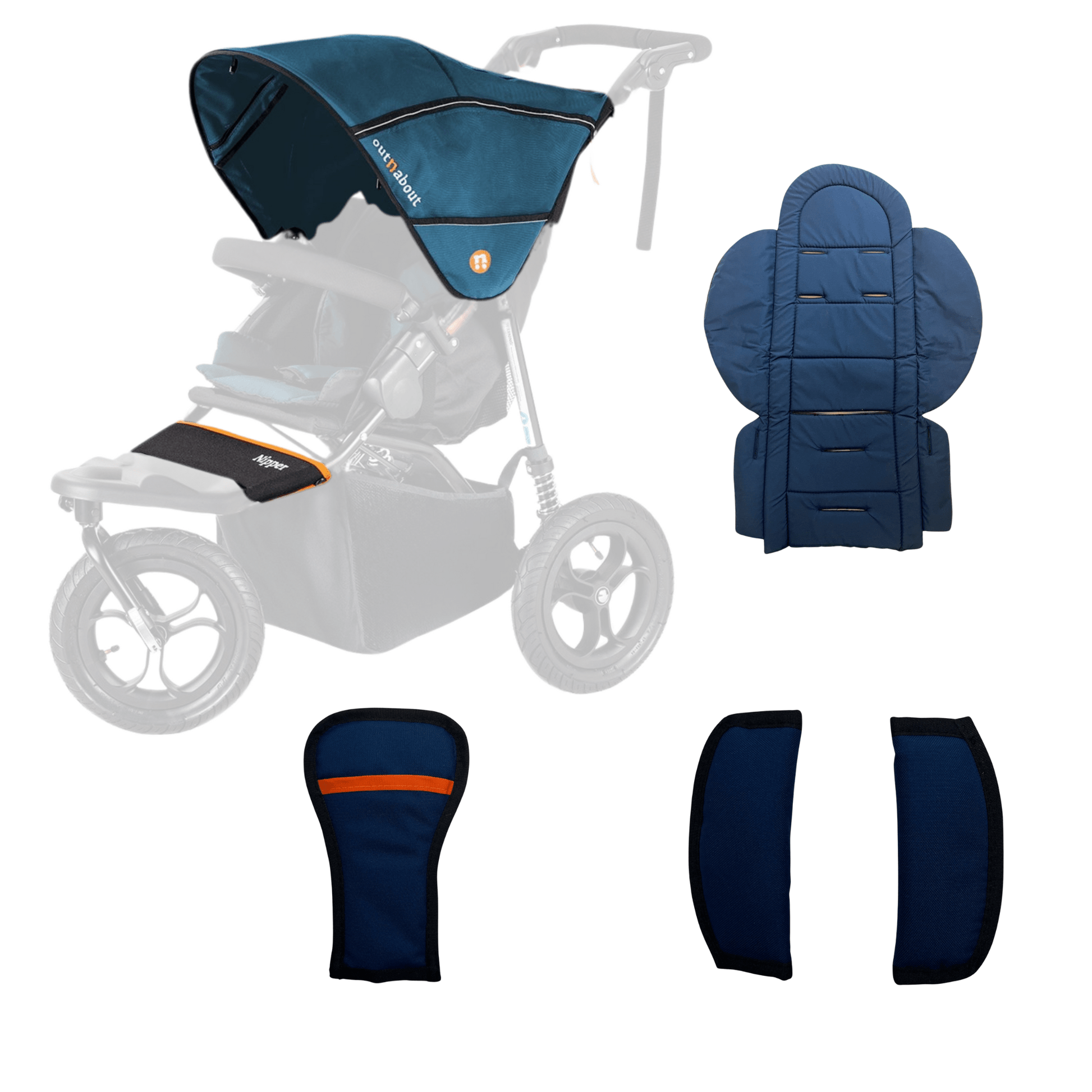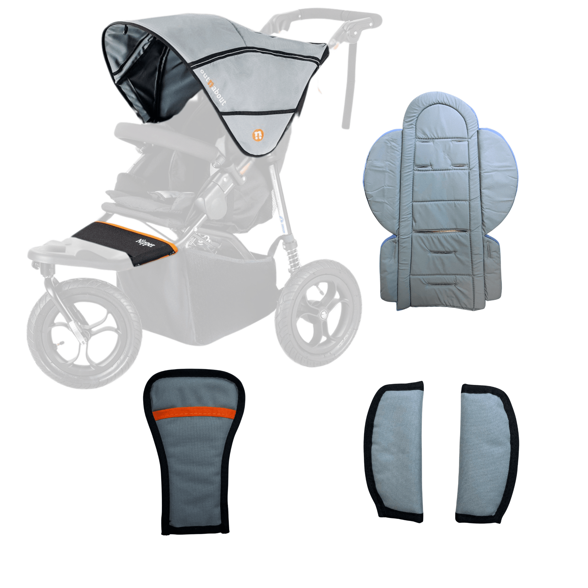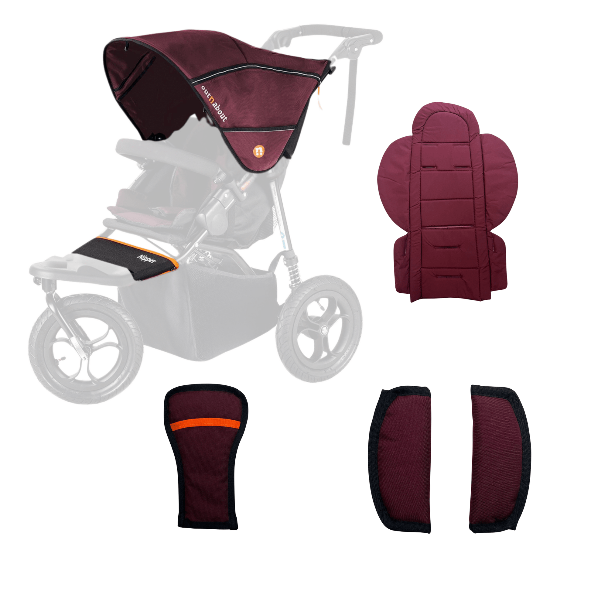 Este paquete de colores incluye una nueva capota, revestimiento de asiento, tira para los pies, correas del arnés y almohadilla para la entrepierna; todo lo que necesita para cambiar el color actual de su cochecito por otro color.
