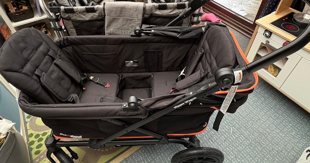 "Love this wagon so easy to move even with older kids in. Great for shopping too! Fits so much in. Great for childminding too."