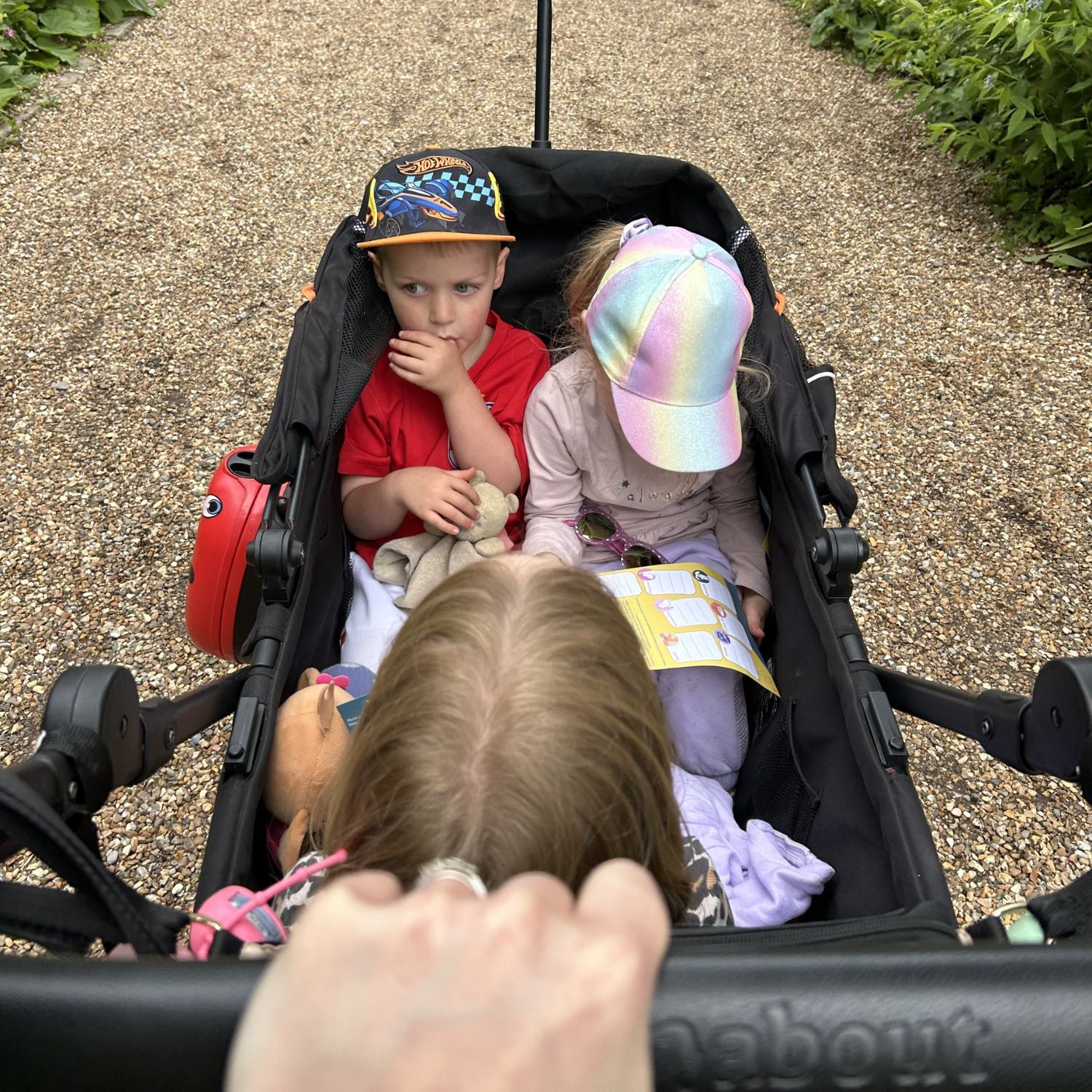 At just 64cm wide, similar to a standard pushchair it fits through doorways, shops, and everyday spaces with ease. But unlike a pushchair, it offers a large, flexible seating and storage area that can comfortably carry two children and your gear, or up to four children with the optional adaptor.